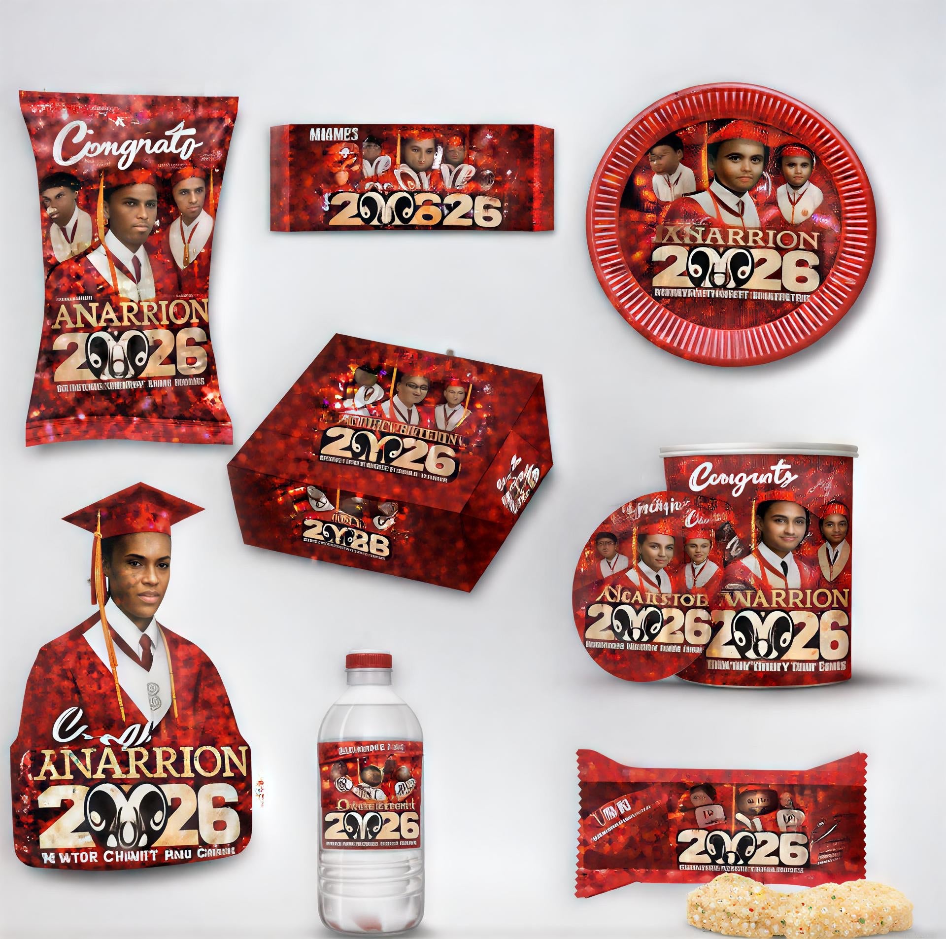 Celebrate your graduate in style with a personalized Graduation Party Starter Pack. This bundle includes custom photo designs that match your graduate’s theme and colors, making your party table stand out.